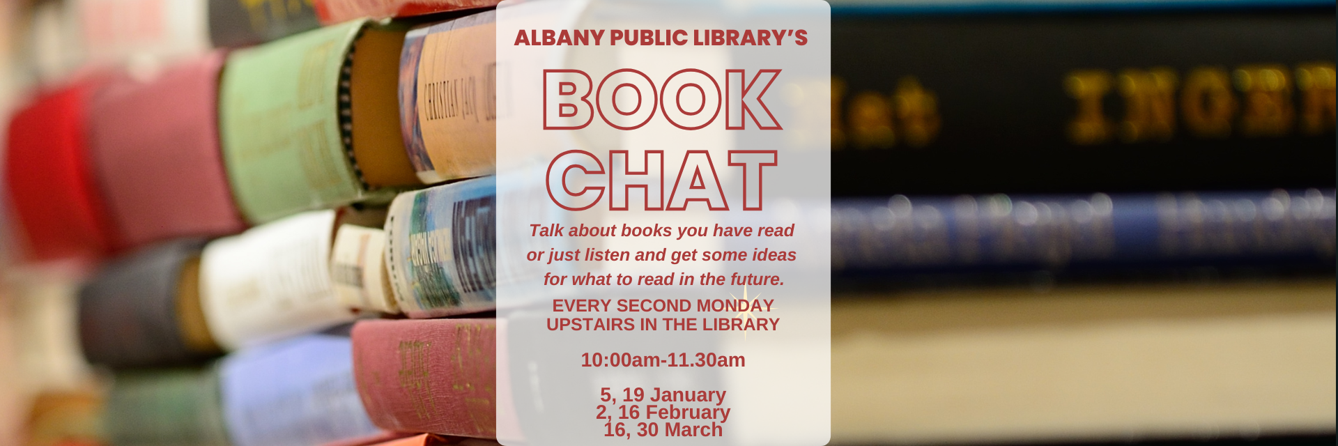 Book Chat is held upstairs in the Library every second Monday from 10.00am until 11.30am.